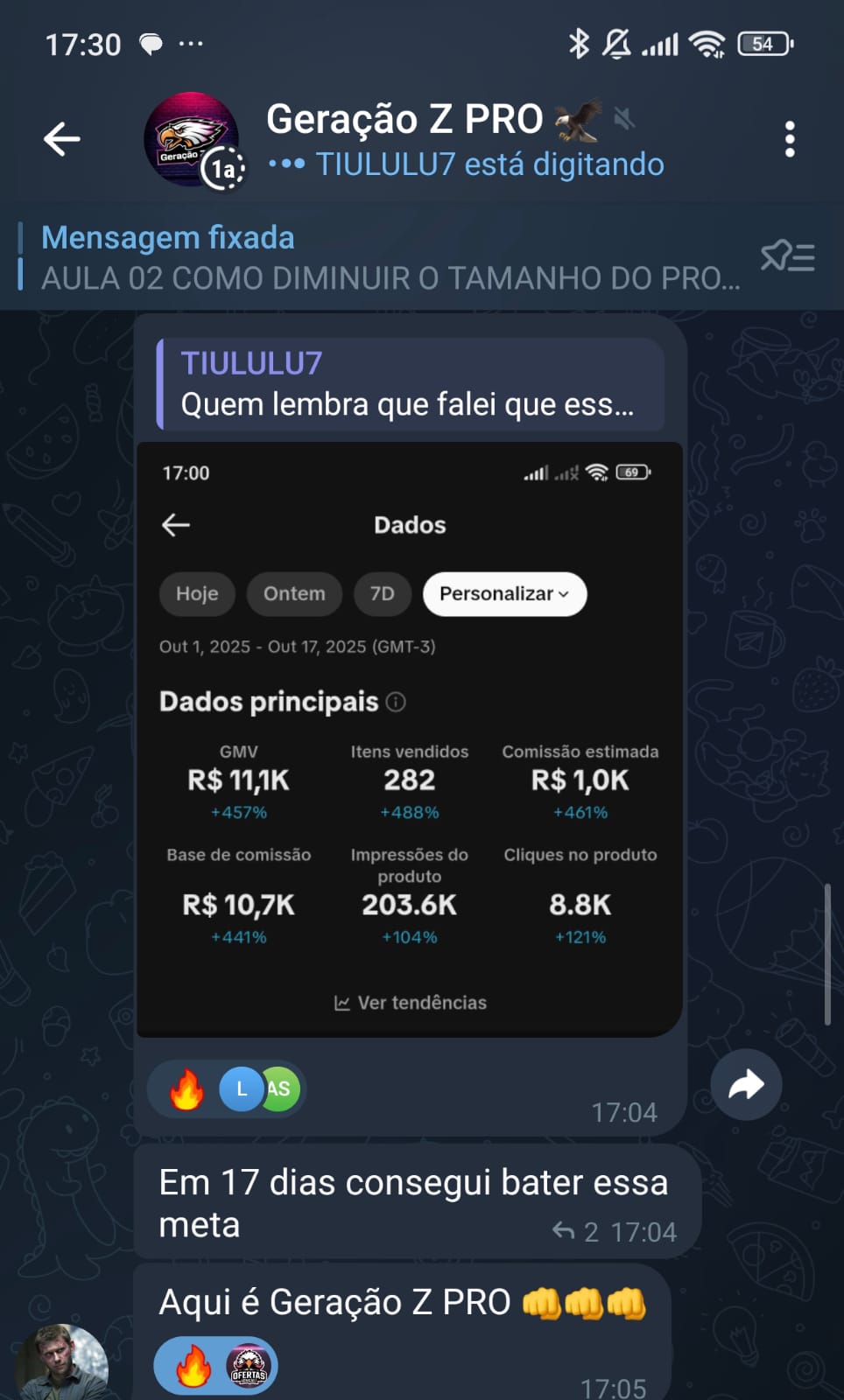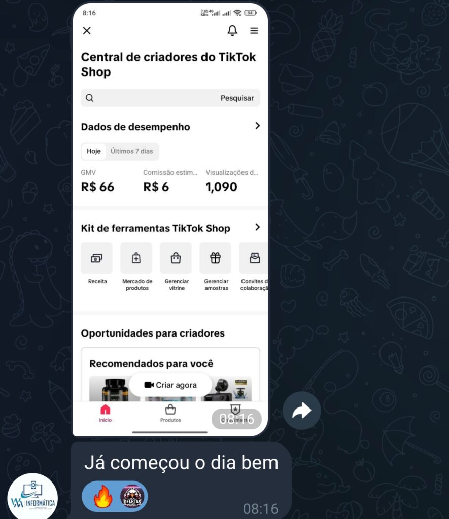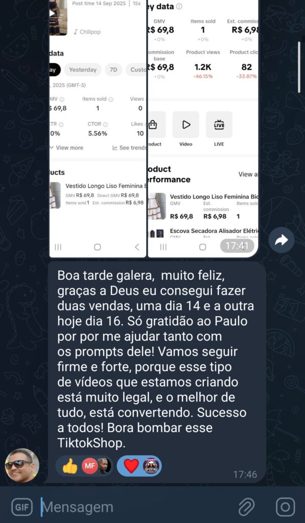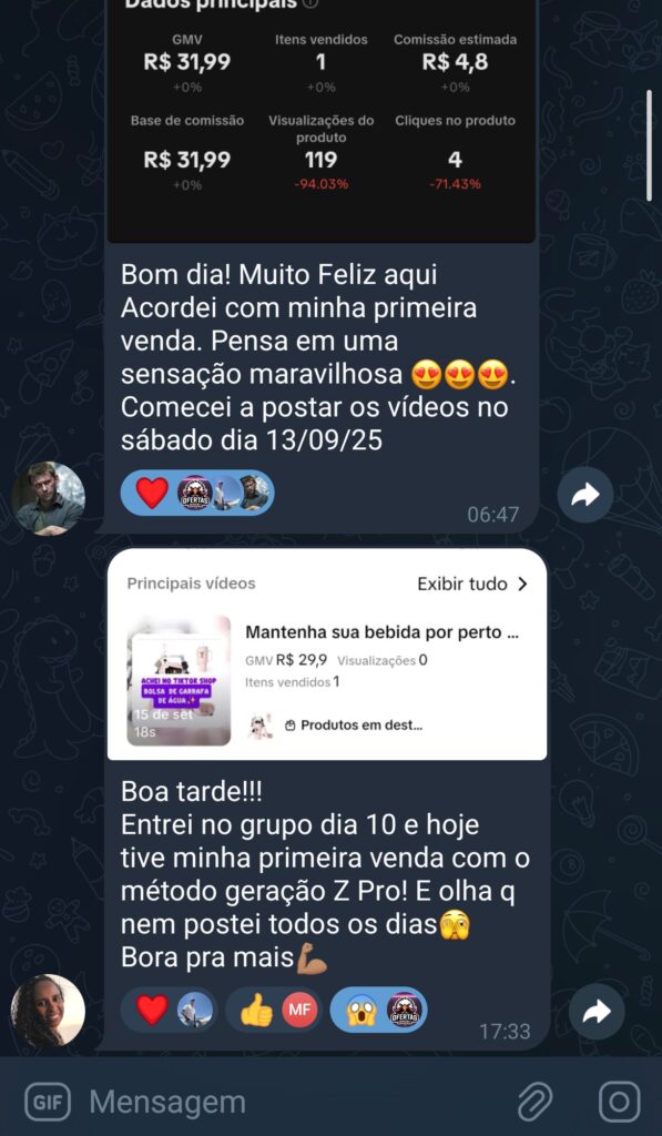 Ao garantir sua vaga hoje, você entra para o Grupo VIP no Telegram, com acesso direto ao chat exclusivo dos alunos, onde poderá trocar ideias, divulgar seus vídeos, fazer networking e acompanhar de perto as estratégias que estão dando resultado na prática.