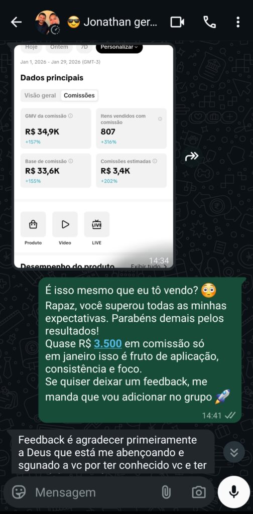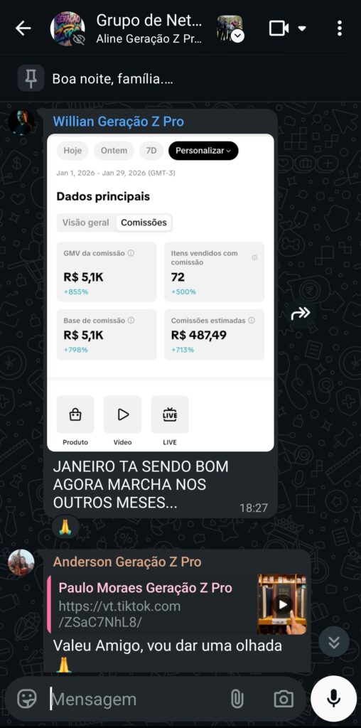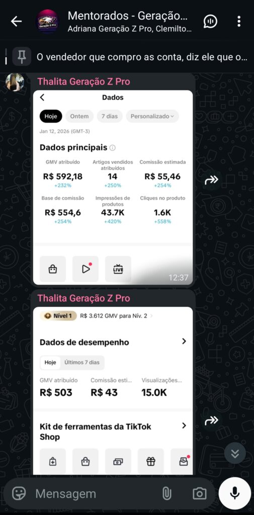 Aulas diretas ao ponto, com demonstrações reais e exemplos aplicados no TikTok Shop.